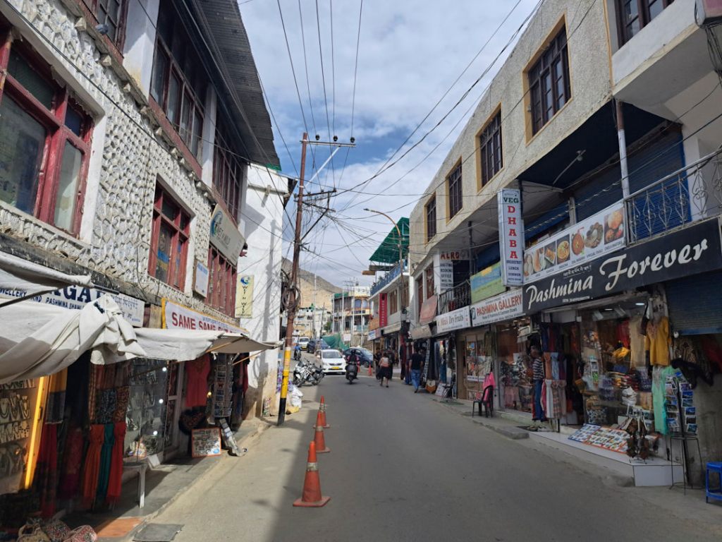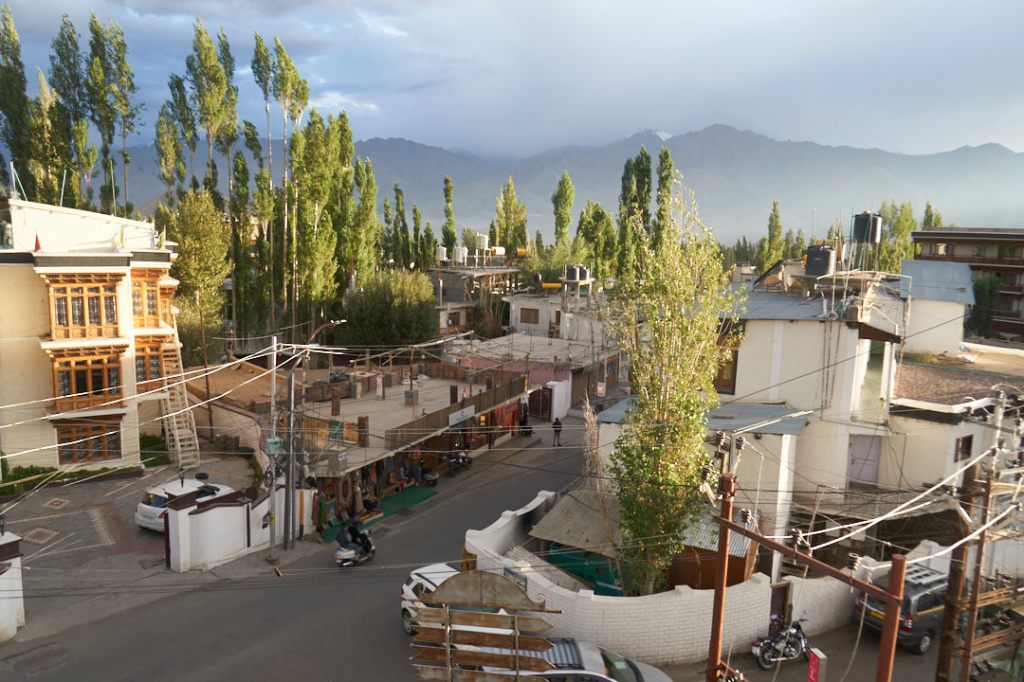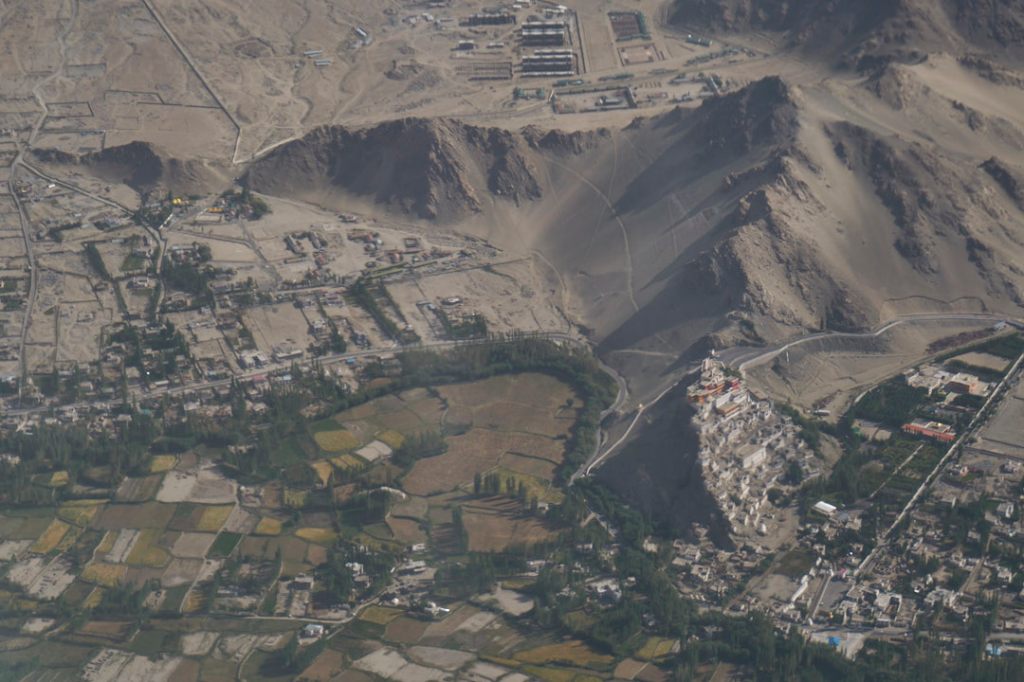 Sehr cooler Anflug zwischen den Bergen hindurch, bevor die Maschine sich in Richtung Landebahn einpegelt. Der Flughafen ist überschaubar aber schon jetzt fällt uns die starke Präsenz des indischen Militärs auf. Auch auf der Fahrt ins Hotel viele Militärposten und Gebäude der Armee. Dazwischen aber ein buntes Treiben der Bevölkerung. Mich erinnert alles ein wenig an Bolivien. Die Felsen, die Farbe der Steine die Gesichter der Menschen. Wahrscheinlich sehen sich die Völker in diesen Höhen eben ähnlich. Leh liegt auf 3500 Meter und wir merken das natürlich auch. Schnelle Bewegungen sind tabu, alles immer schön langsam, in Zeitlupe sozusagen. Im Hotel stecke ich mir den Sauerstoffsensor an und siehe da…