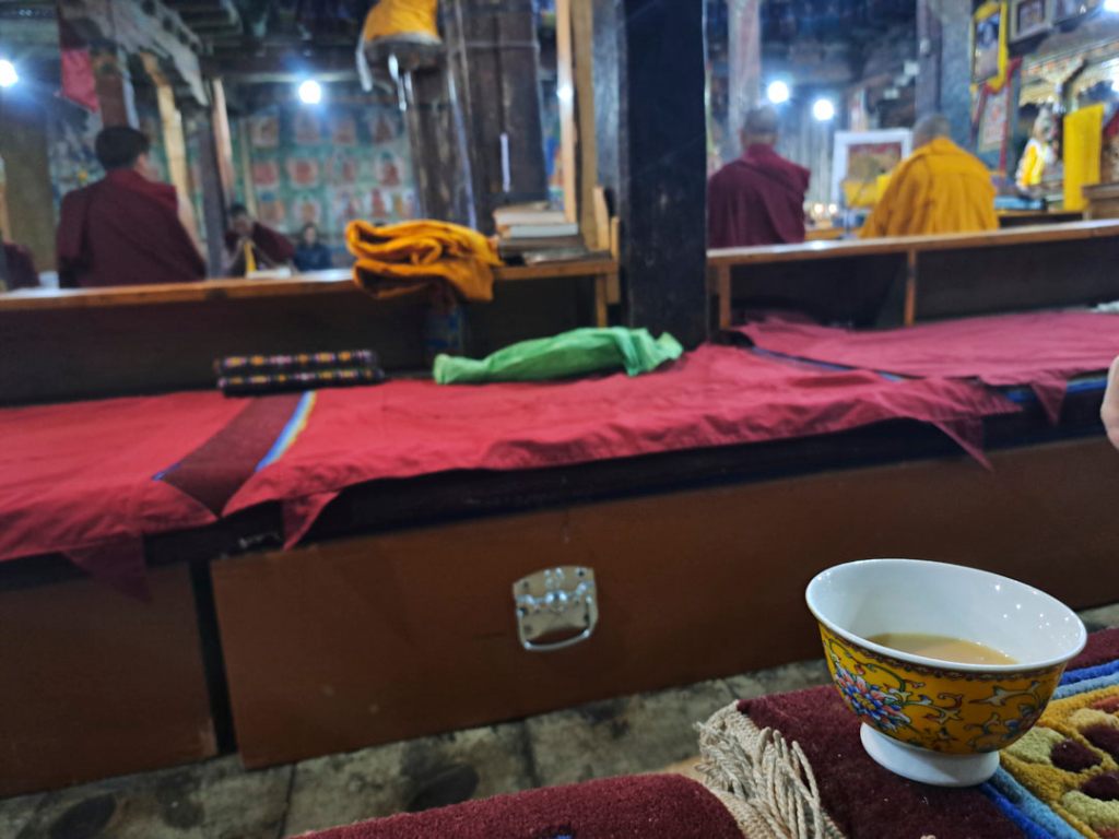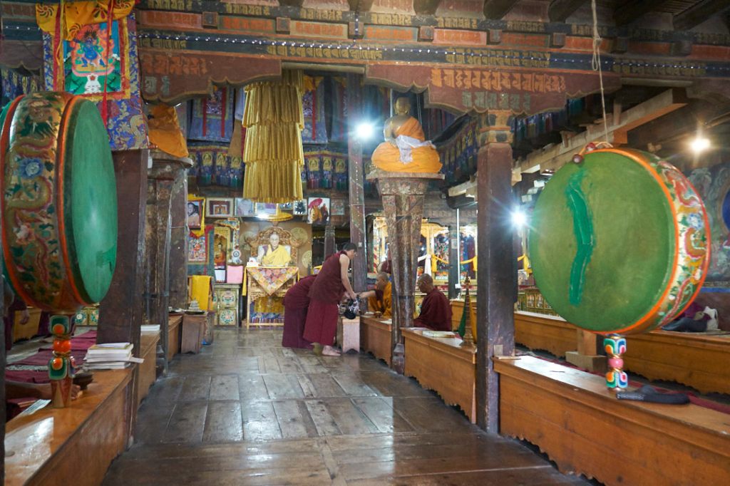 Anschließend erklingen auf dem Dach des Klosters die Dung Kar, die Schneckenhörner in alle Himmelsrichtungen. Das ist nicht zu beschreiben und einfach nur großartig. Das frühe Aufstehen hat sich schon dreimal gelohnt.
