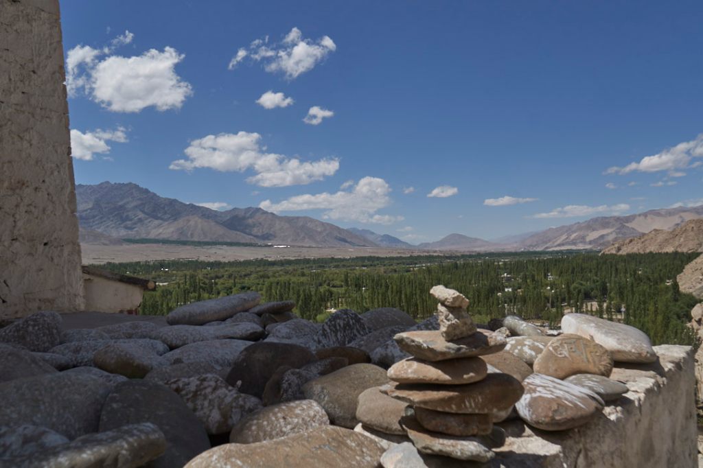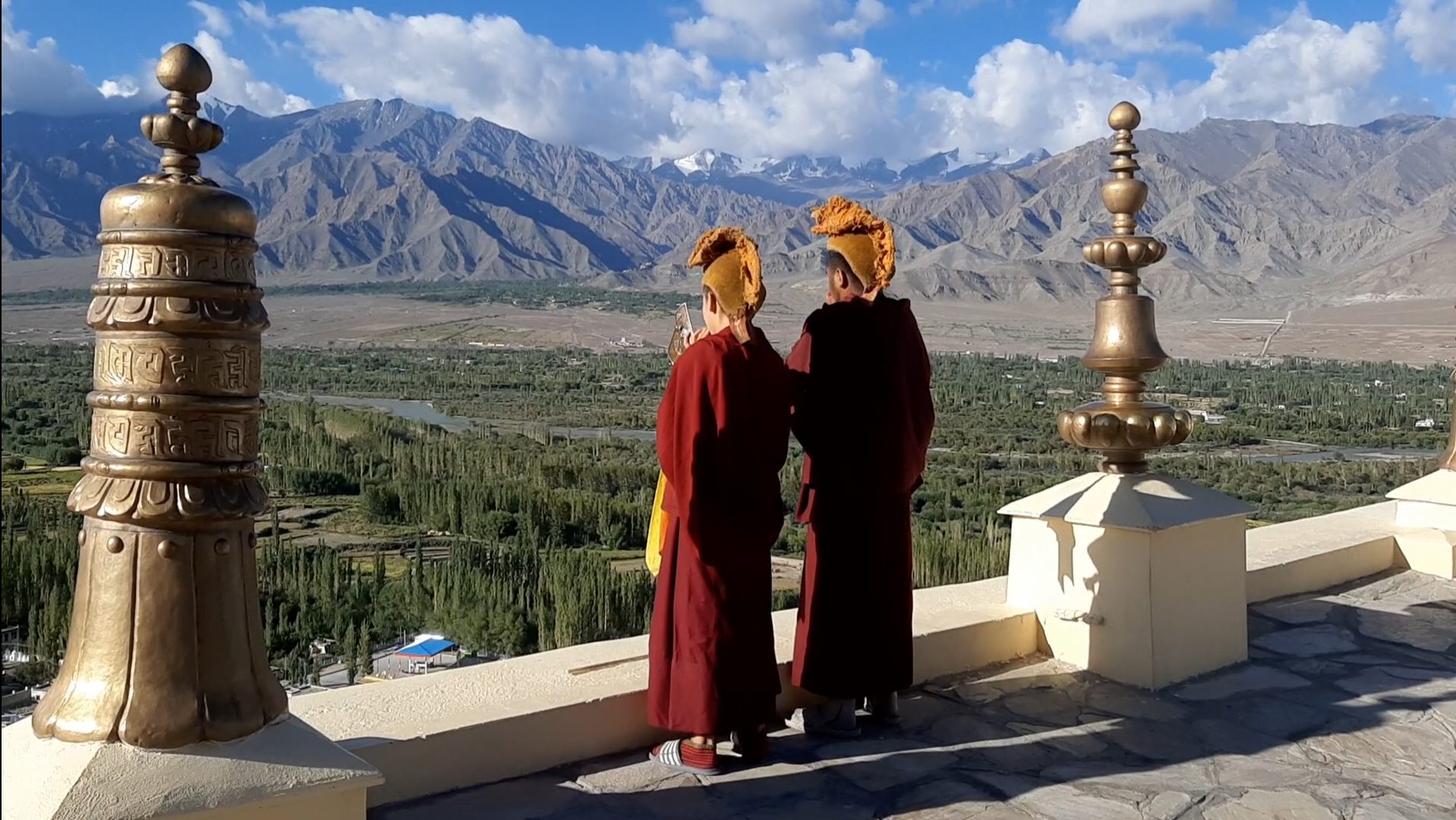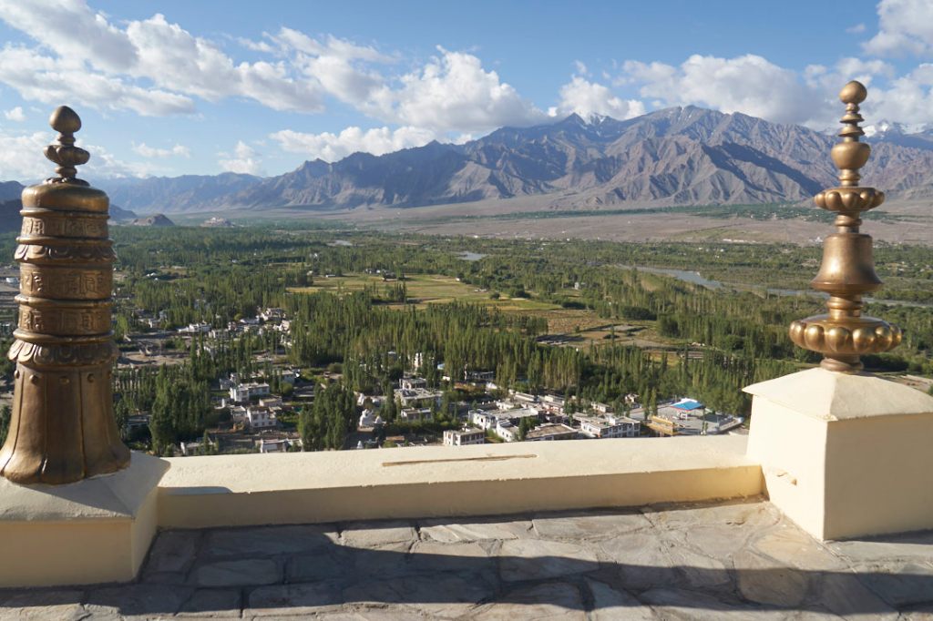 Vom Dach des Klosters schaut man in die Indus-Ebene. Alles leuchtet in einer Klarheit mit unglaublich kräftigen Farben. So haben wir es auch in Tibet erlebt.