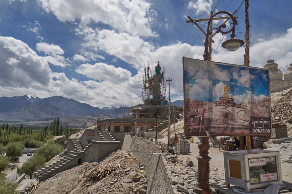 Zum Abschluss des Tages ein Abstecher zum Shey Palast. Der Palast war vor langer Zeit der Sitz des Königs von Ladakh und ist jetzt eher ein Kloster. Es wird gerade der ganze Komplex rekonstruiert und eine riesige neue Buddhstatue davor gebaut.