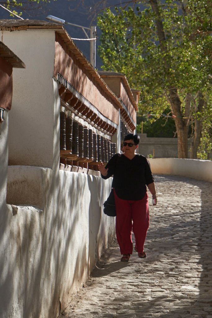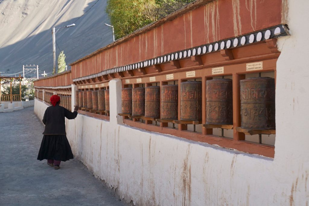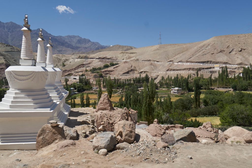Nach einer wunderbar entspannten Nacht, ohne Hundegebell vor dem Hotelfenster, starten wir am nächsten Morgen mit einer Besichtigung des Klosters von Alchi. Dieses 1000 Jahre alte Kloster ist das einzige welches nicht auf einem Hügel erbaut ist und es wurde zum UNESCO Weltkulturerbe erklärt. Dementsprechend streng sind die Vorschriften und Kamera und Handy müssen am Eingang in einem Schließfach eingeschlossen werden. Die alten Wandmalereien sind immer noch großartig erhalten, was bestimmt an der geringen Luftfeuchtigkeit liegt. Hier und da eine Spur über den Wänden von durchgelaufenem Regenwasser.