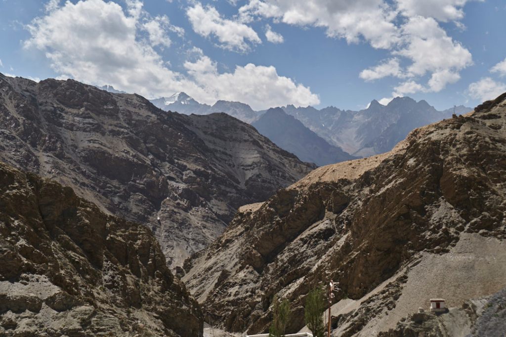 Nur wenige Kilometer weiter schwenken wir nach rechts vom Highway ab und fahren hinauf zum Basgo Old Fort. Die Straße wird immer schmaler und schlängelt sich durch die engen Schluchten.